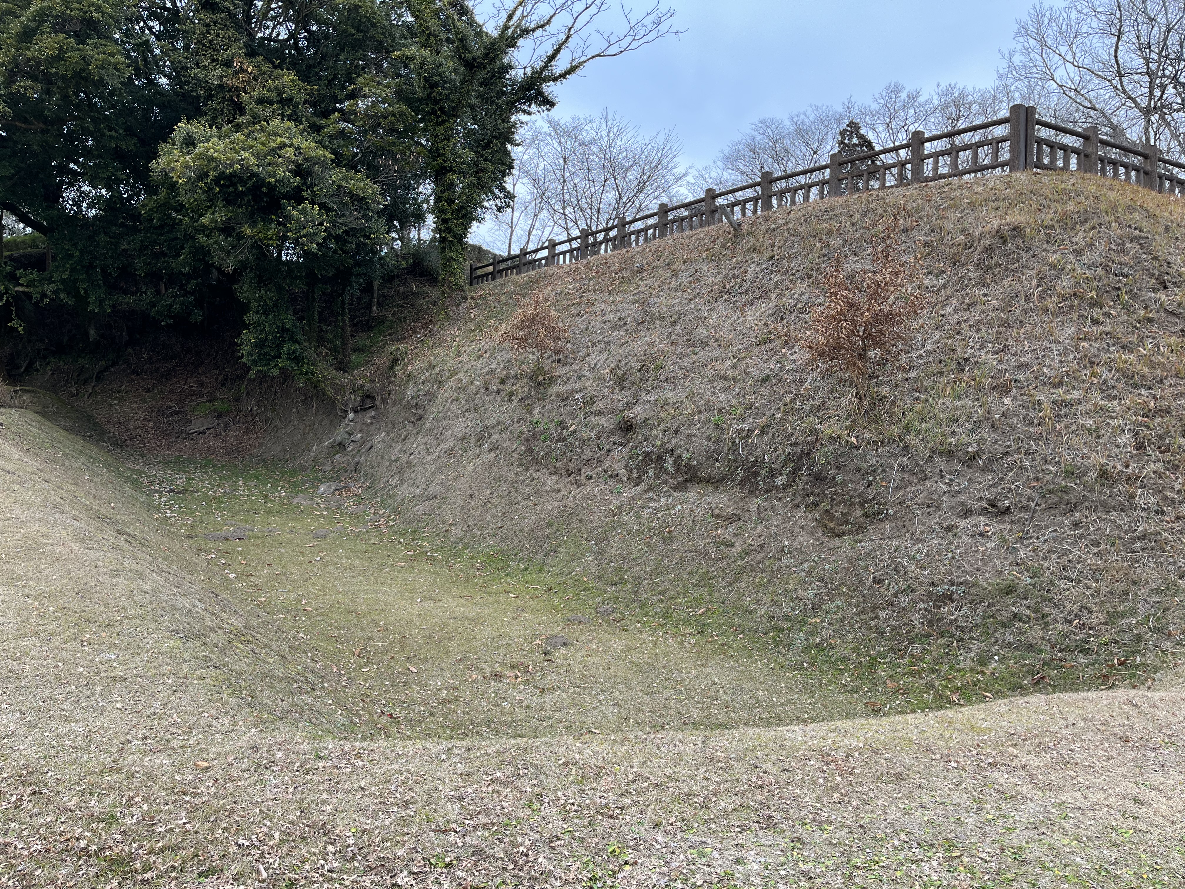 神明城の西側に設けられた伊作城との高低差を克服させる空堀。